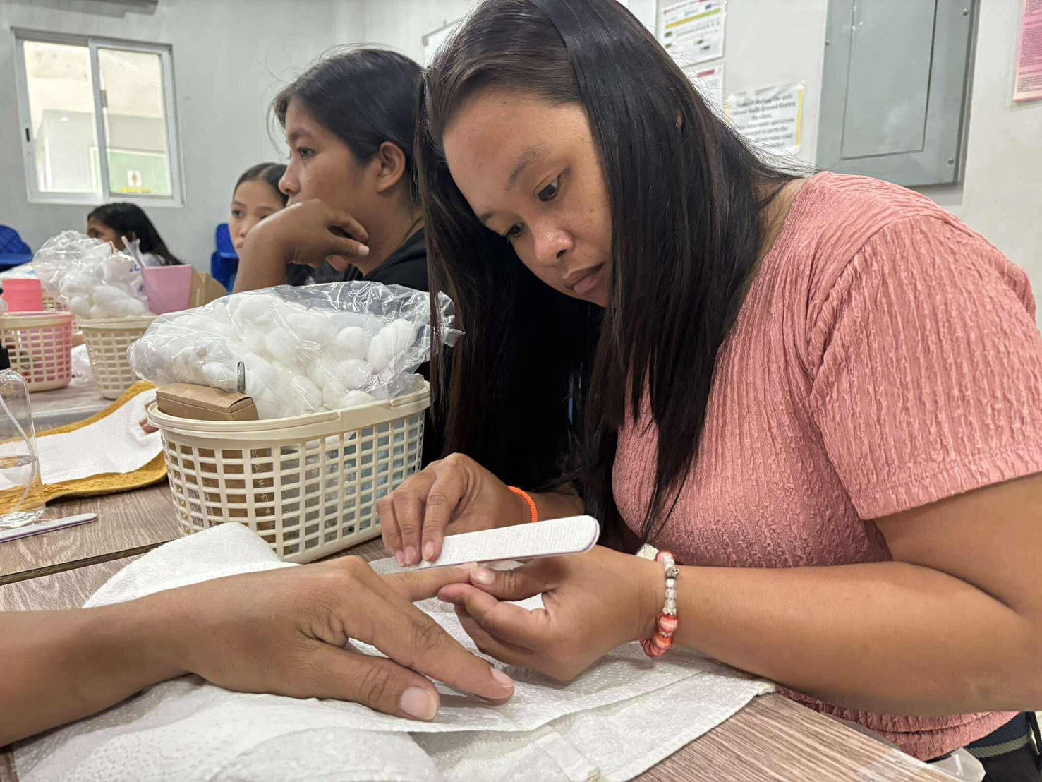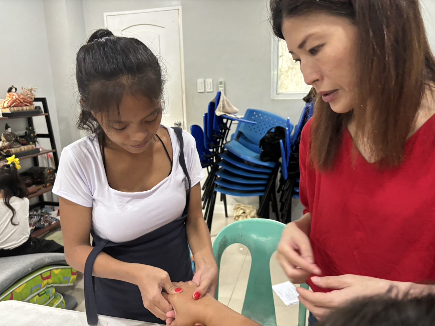 「ニッパー(甘皮処理)の操作が一番難しい」「皮膚を傷つけてしまいそうで怖い」という声もありましたが、講師は「練習を重ねれば必ず手が覚える」と励まし、一人ひとりの成長を支えました。