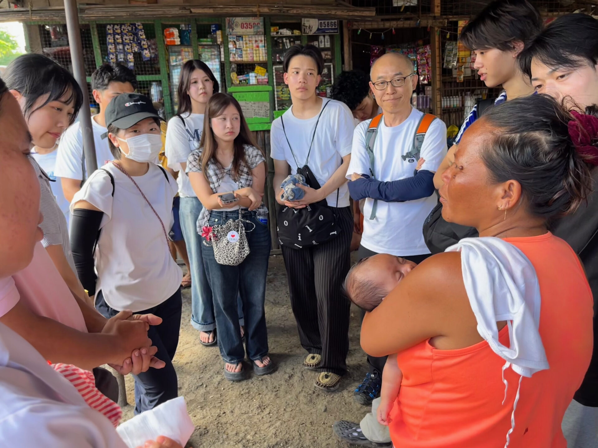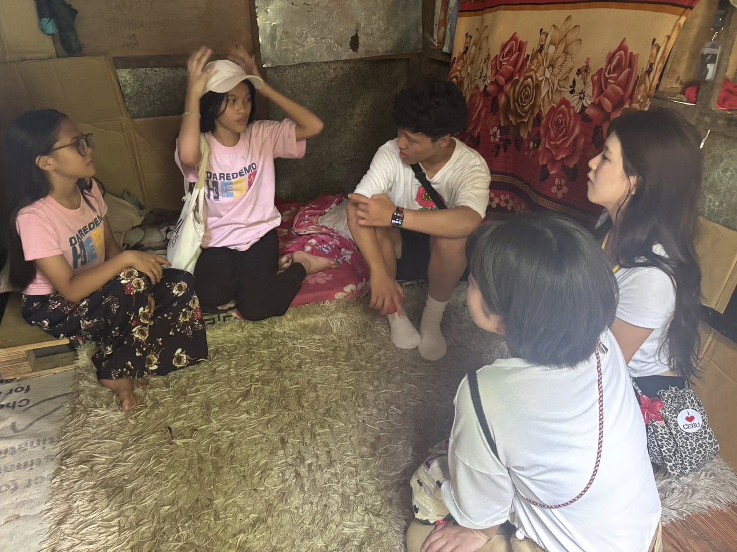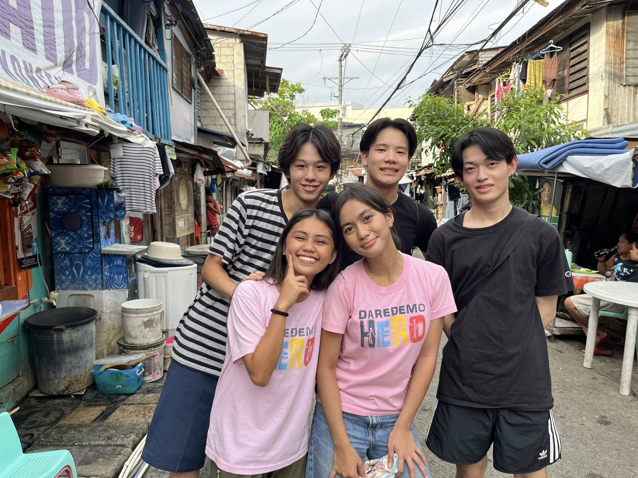 細い路地の奥に立つ、簡易な素材で建てられた家。台風の被害で使えなくなってしまった部屋。限られた環境の中でも、懸命に生活し、前を向いて学び続ける子どもたちの姿に、学生たちは深く心を動かされました。