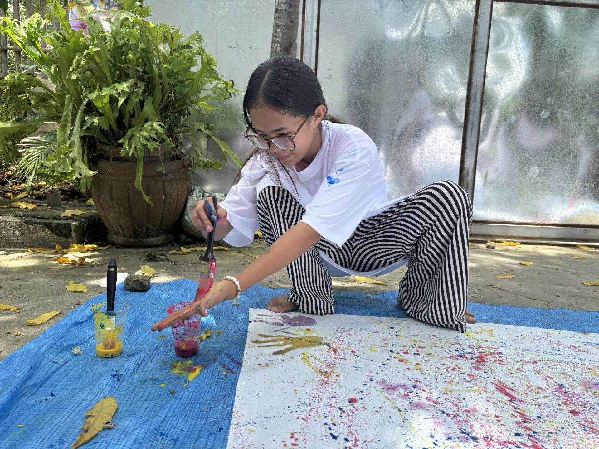 奨学生とのドリッピングアート