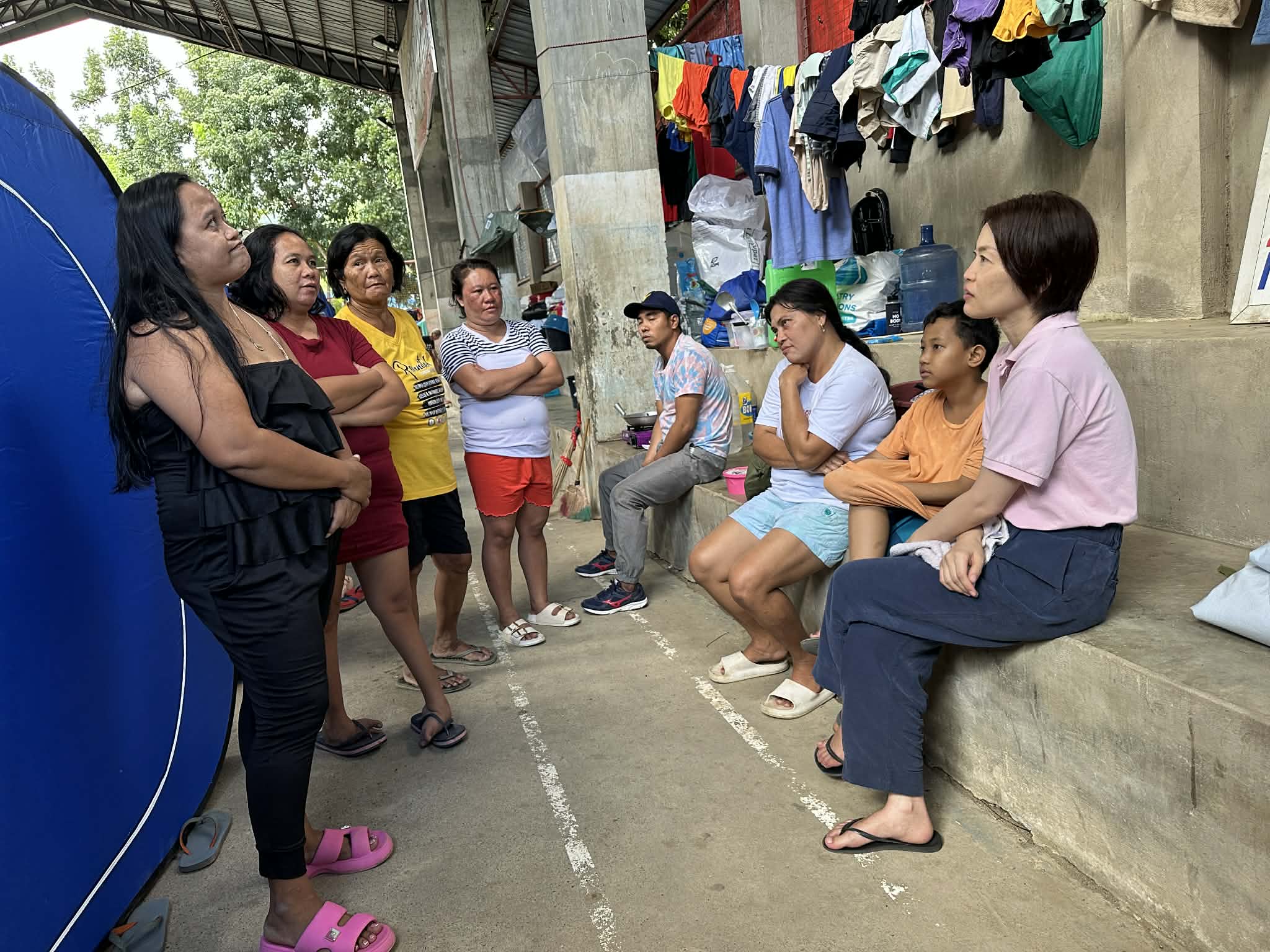 台風が通過した翌日、私たちはまず、被災者に乾いた洋服を届ける支援を始めました。多くの人が土石流から命からがら逃げ出し、身につけているのは濡れた泥だらけの服だけ。事務所に保管していた日本からの支援物資をすぐに取り出し、避難している家族や子どもたちへ配布しました。