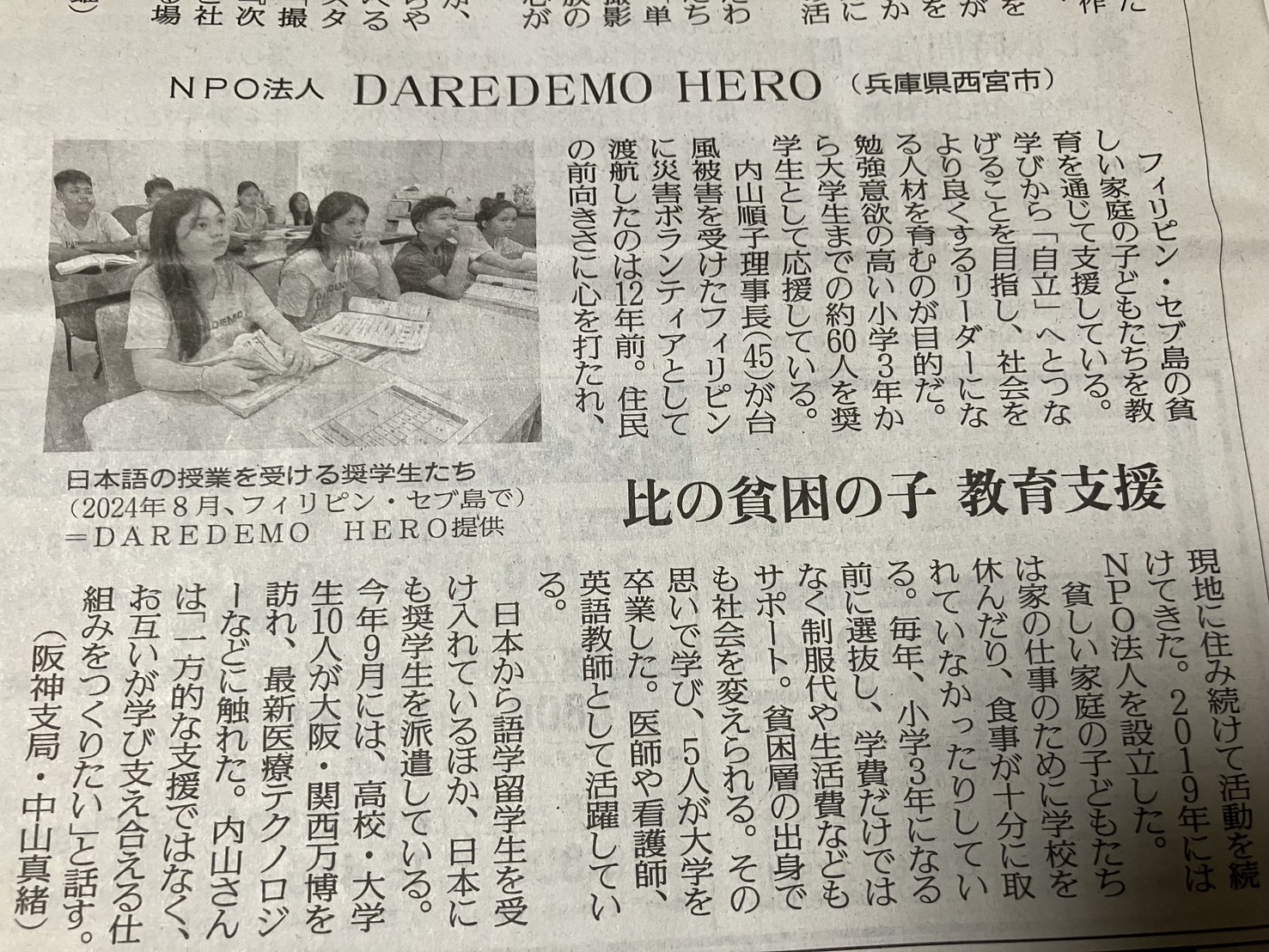 今回の受賞にあたり、新聞紙面でも私たちの活動をご紹介いただきました。このことが、より多くの方に現地の現実や子どもたちの可能性を知っていただくきっかけとなり、新たな「希望の連鎖」へとつながることを願っています。