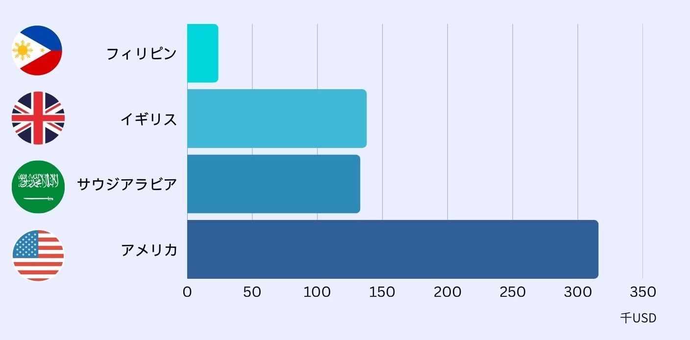 推計では、フィリピン国内の医師の平均年収は約2万〜2万5,000米ドル(約300万円前後)とされています。これに対し、