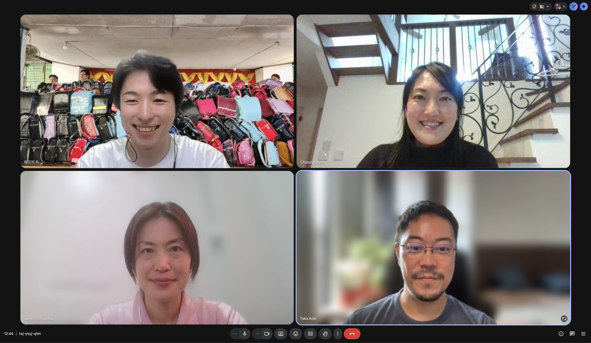 左上から時計回りに、JIYU 梅田評議員・華布 大西様・・現地マネージャー タカ・DAREDEMO HERO 代表 内山