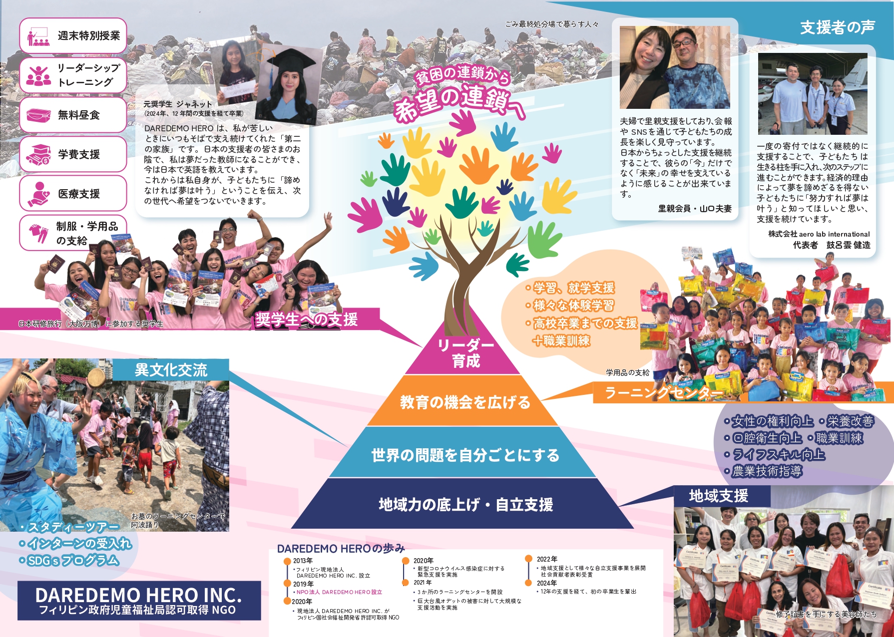 貧困層が「自分の力で生き抜くための力」「正しい選択をする力」を付けるための支援を行っています。